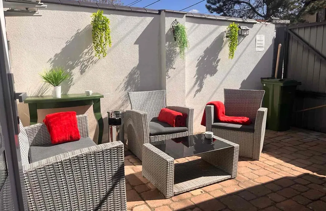 Completo di un balcone, un bar sulla terrazza e un salottino, il King House & Garden With Ac And Free Parking Possibility Appartamento è arredato con un divano e uno scrittoio e con comfort contemporanei come l'una TV a schermo piatto con canali satellitari e un televisore multicanale. Quest’alloggio comprende 1 camera da letto. Questa struttura ha anche 1 bagno con un bagno alla francese e una doccia. Inoltre, potrete usufruire di asciugacapelli forniti nel bagno.